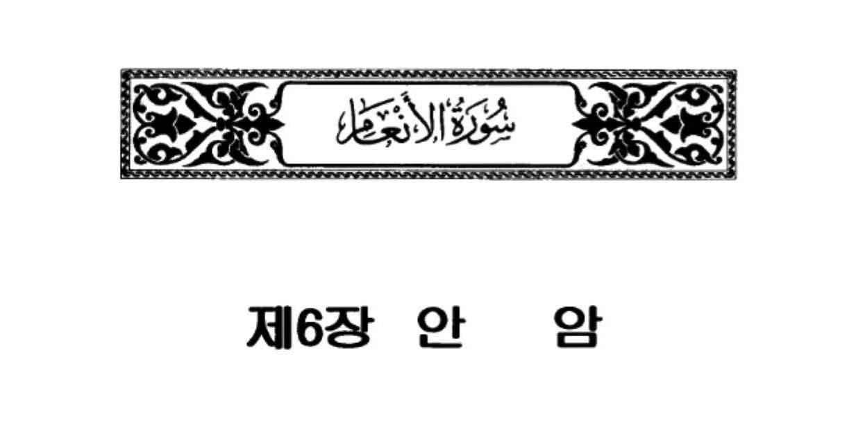 (알-안암(가축) 장 )장 ,꾸란의 한국어 의미 번역,하나님의 책이자 하나님의 말씀의 의미 번역