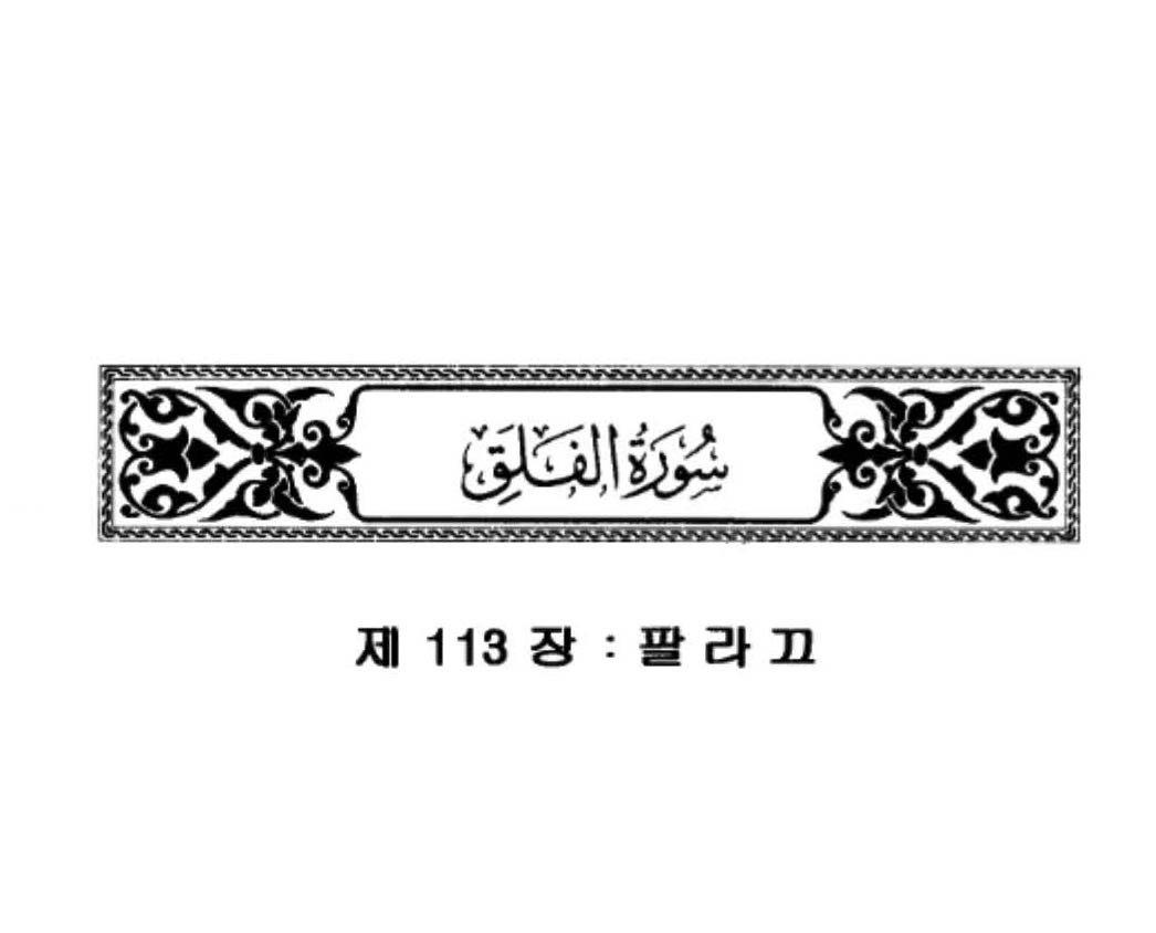 (알-팔라끄(새벽) 장 )장 ,꾸란의 한국어 의미 번역,하나님의 책이자 하나님의 말씀의 의미 번역